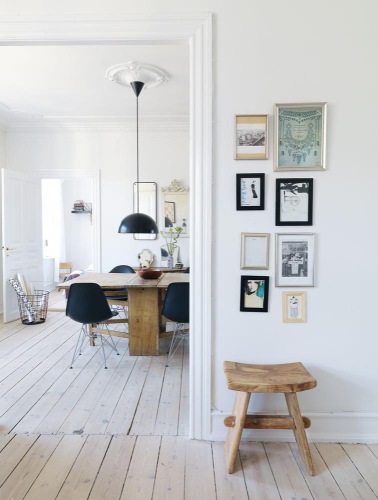 Gorgeous high ceilings with cornicing, stripped wood floors, old vintage pieces and design classics all rolled into one. This is pretty much my dream flat. What's not to like?